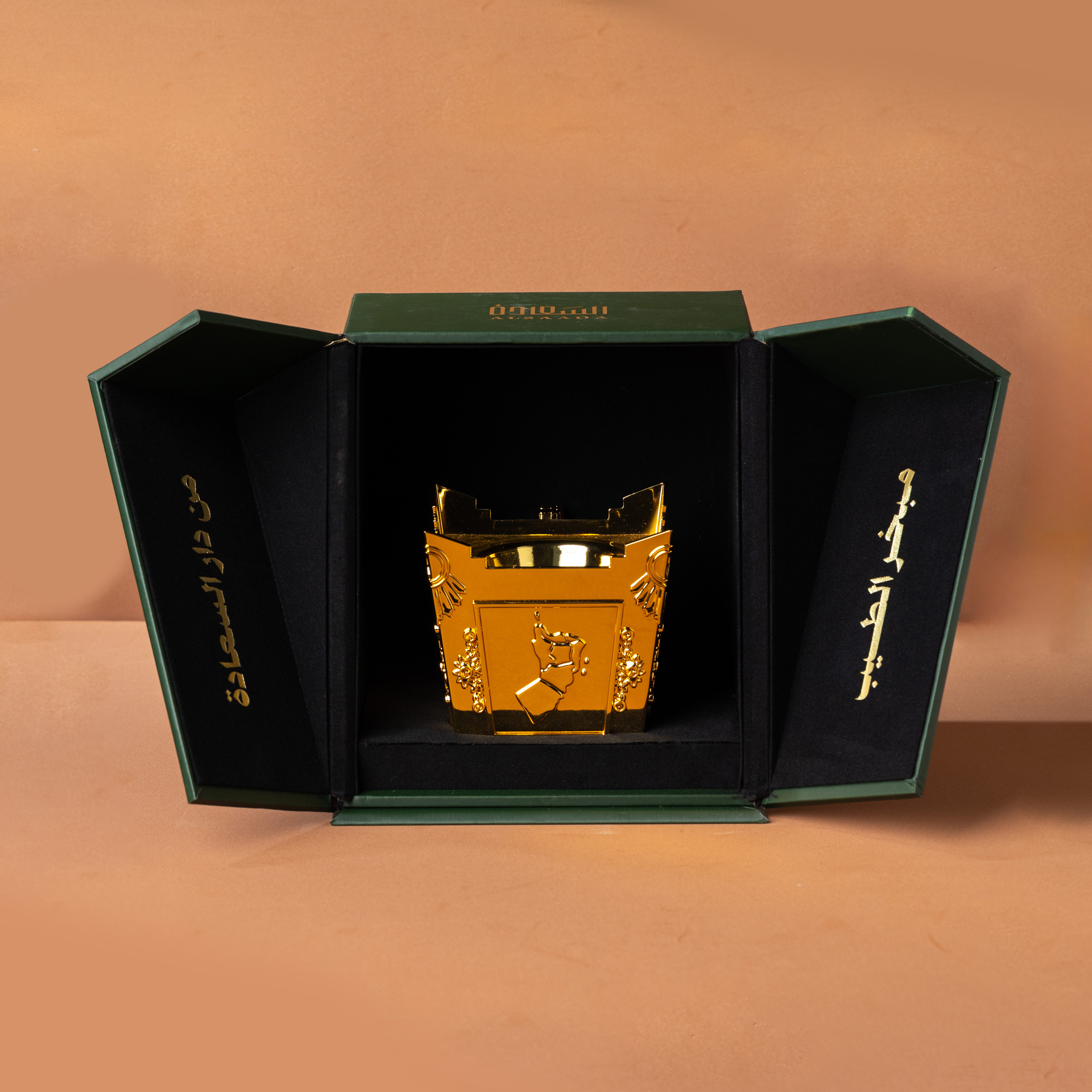 مبخر ذهبي فاخر مصنوع من الاستانلس ستيل عالي الجودة، يتميز بتفاصيل دقيقة تعكس جمال الحرفة وفخامة التصميم. يضفي لمسة راقية على المجالس الفخمة والمناسبات الخاصة، كما يعد هدية مثالية تعبر عن الذوق الرفيع والفخامة.
